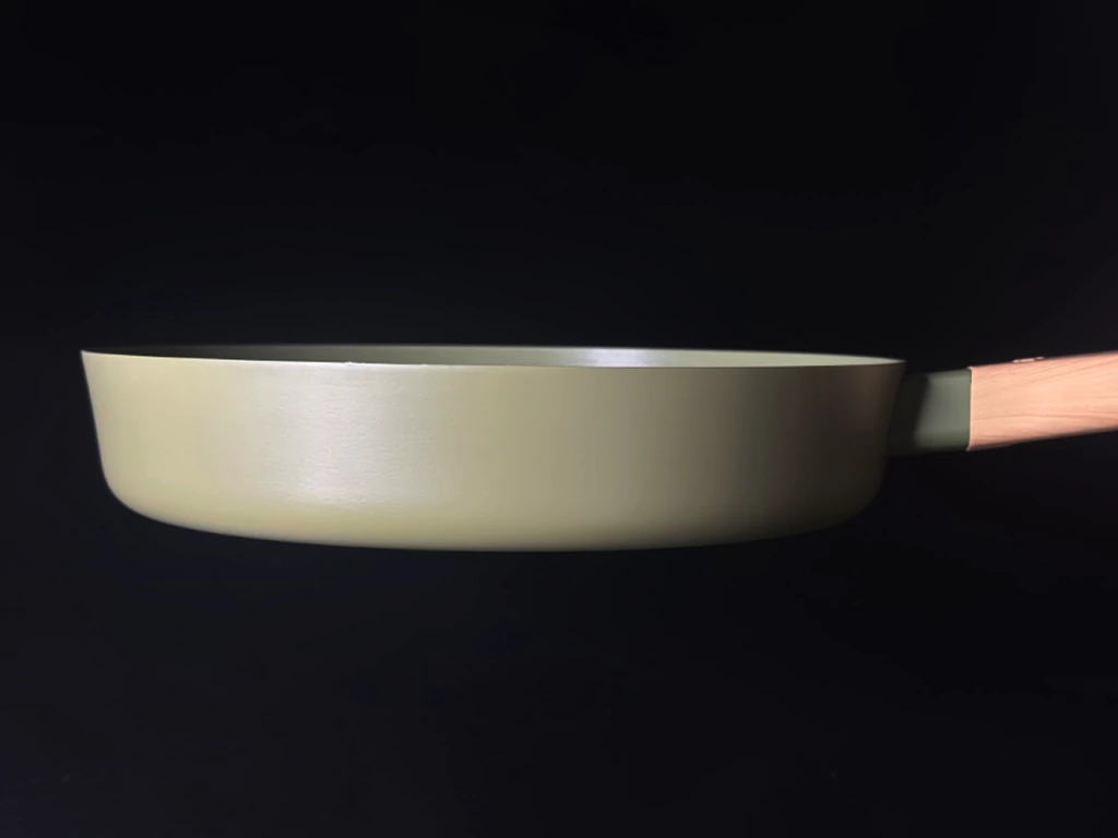 Cuenta con mango de silicona símil madera que brinda un agarre cómodo y seguro, y base con difusor de calor para una distribución uniforme de la temperatura.